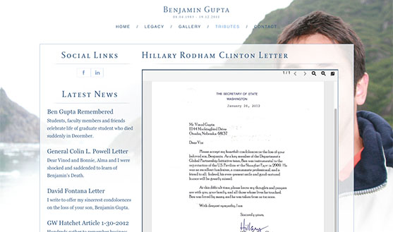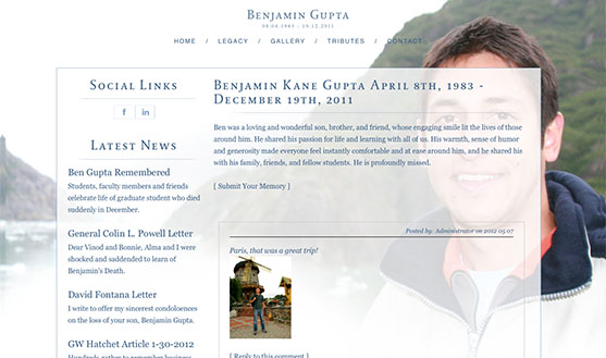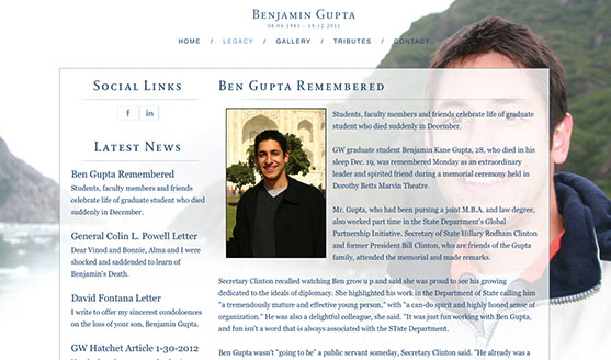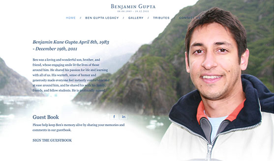 We want to extend sincerest gratitude to the the Gupta Family for allowing us the opportunity to ensure that Ben's Legacy and Memory live on through his memorial website.