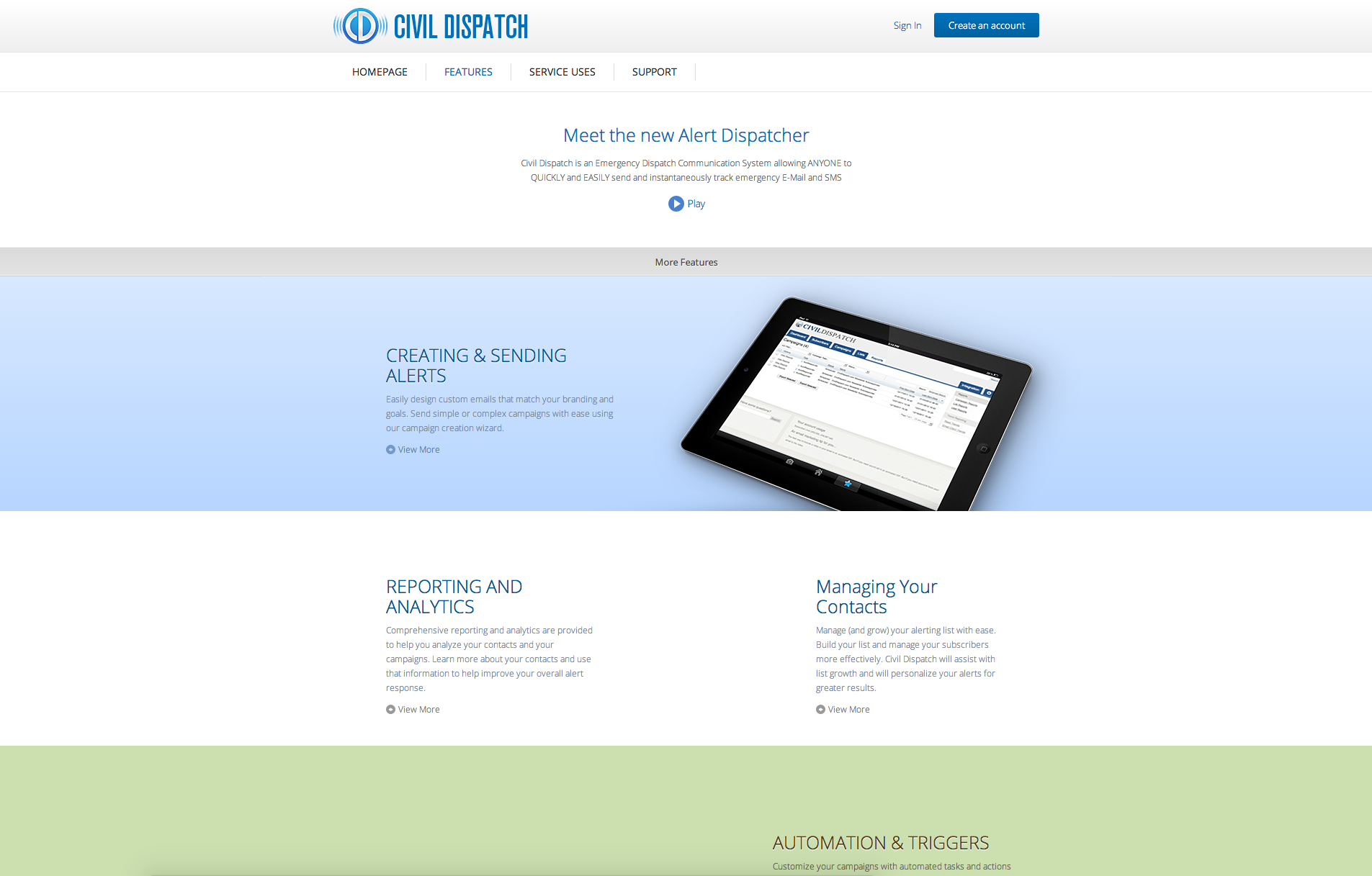Where there was a need, we are there to provide the way. In this case the need was for a universal emergency dispatch system that anyone, anywhere could use to send notification campaigns to email, cell phones, landlines, websites, social networks, RSS feeds, and that could integrate easily and seamlessly into an unlimited array of other websites and notification networks. We delivered means to meet those needs in 2011 and were lucky enough to be considered to work on the rebrand for the new CivilDispatch.com website.