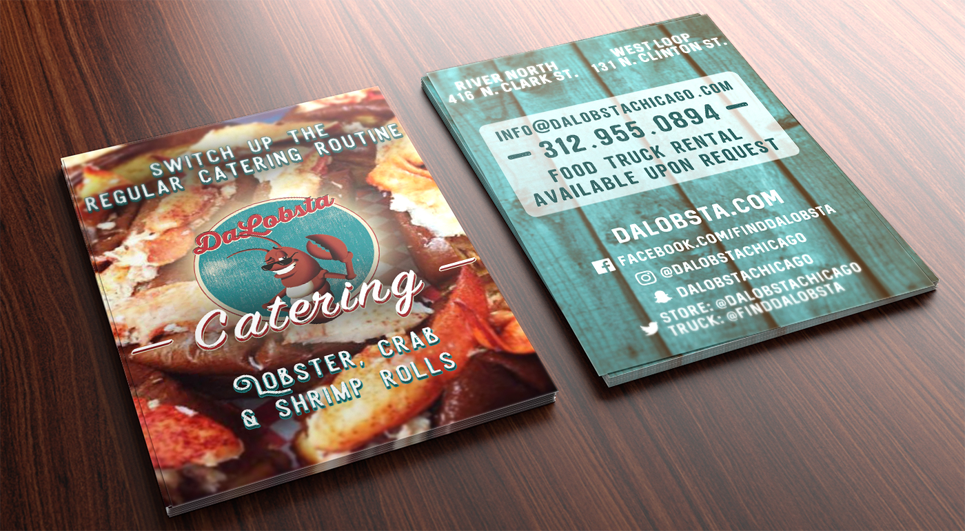 In the summer of 2016, Da Lobsta came to us wanting some print materials designed for their promo cards and some leaflets for marketing materials and promotions to advertise for their catering services. Our graphic design team came up with these beauties!