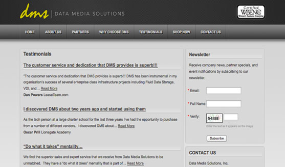 Data Media Solutions, certified WBENC “Women's Business Enterprise” company, offers the ability for their “tech savvy” clients to find the goods and services they need quickly and easily.  For the more complicated or sophisticated solutions DMS offers a comprehensive design and support program.