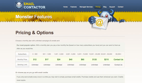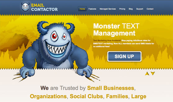 The project was simple, to build a new brand that equals emailContactor.com's powerful email campaign sending and tacking technologies. Our designers were able to take the existing brand and create a very elegant yet fun design centralized around their very own mascot. The new motto “Monster E-Mail Marketing” is very fitting to emailContactor.com's suite of services.