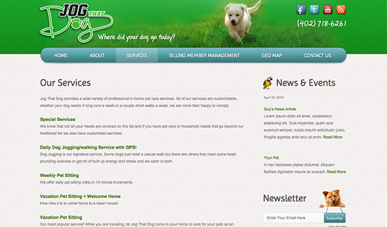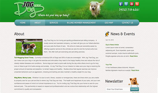 Outside of the development framework our designers knocked out a custom online brand and identity to suit and laid out the search and social marketing ground work so Jog That Dog's staff could immediately start socializing through Facebook, Twitter and a few other various socially acceptable channels.