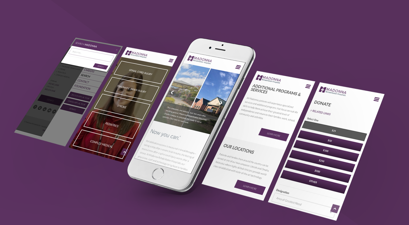 December 19, 2016 - The launch of Madonna Rehabilitation Hospitals’ new responsive website and online brand comes after a 6-month concept design and development project to create a fresh and current brand for Madonna Rehabilitation Hospitals (MRH), as they prepared to launch their new Omaha campus.