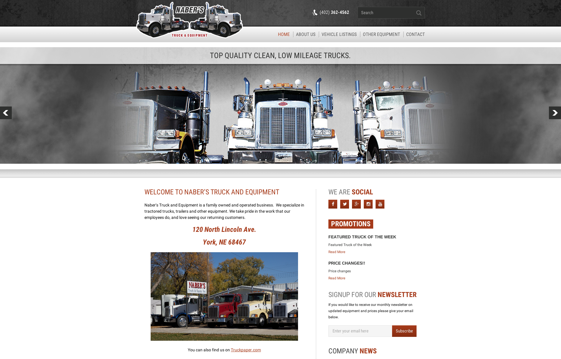 Naber's Truck and Equipment is a family owned and operated business that specializes in tractored trucks, trailers and other equipment. Naber's takes great pride in the work that their employees do, and loves seeing their returning customers.
