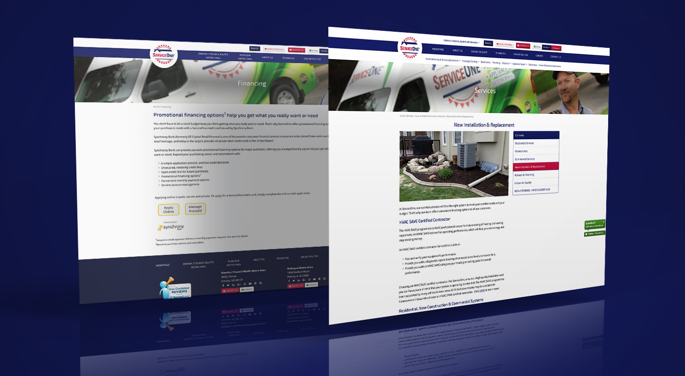 ServiceOne came to Omaha Media Group needing to condense multiple websites into one new comprehensive, mobile-friendly site with a modern design.