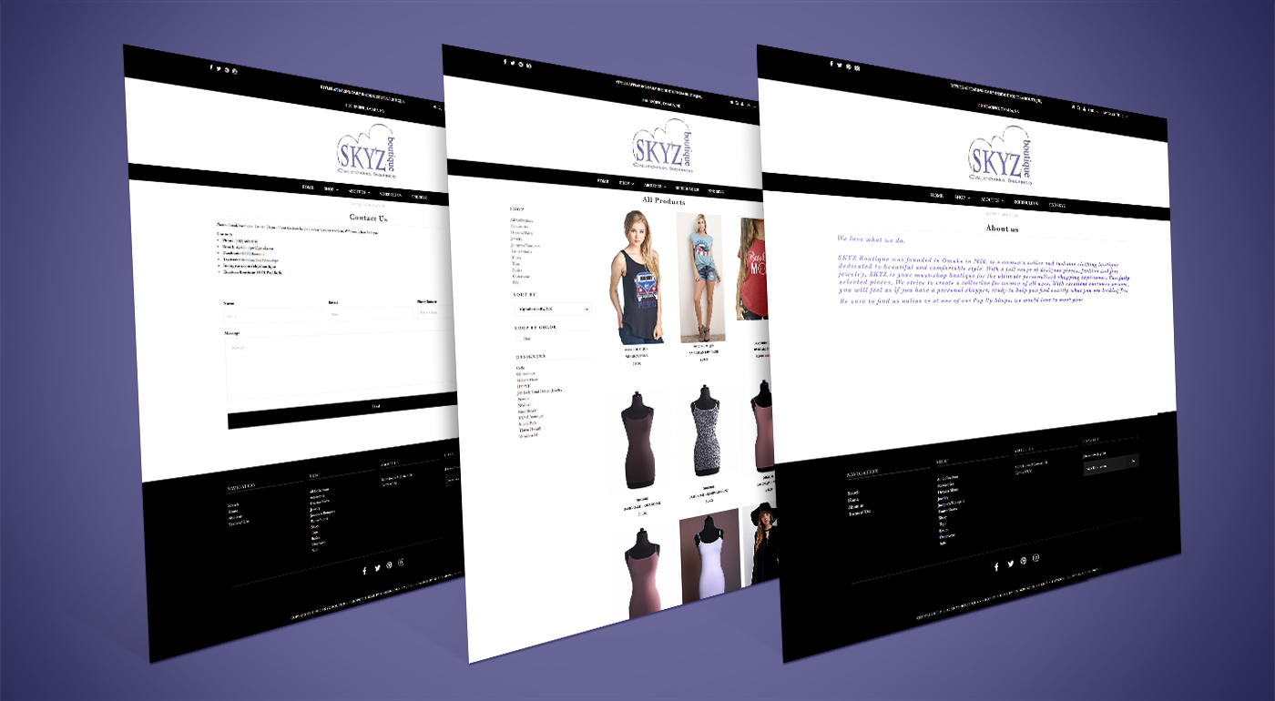 SKYZ Boutique was founded in Omaha in 2010, is a women's online and in-home clothing boutique dedicated to beautiful and comfortable style. SKYZ came to us with the need of moving their inventory to an upgrated e-commerce platform in addition to using the OMG team for their social media management. We've really enjoyed being an extension of their team!
