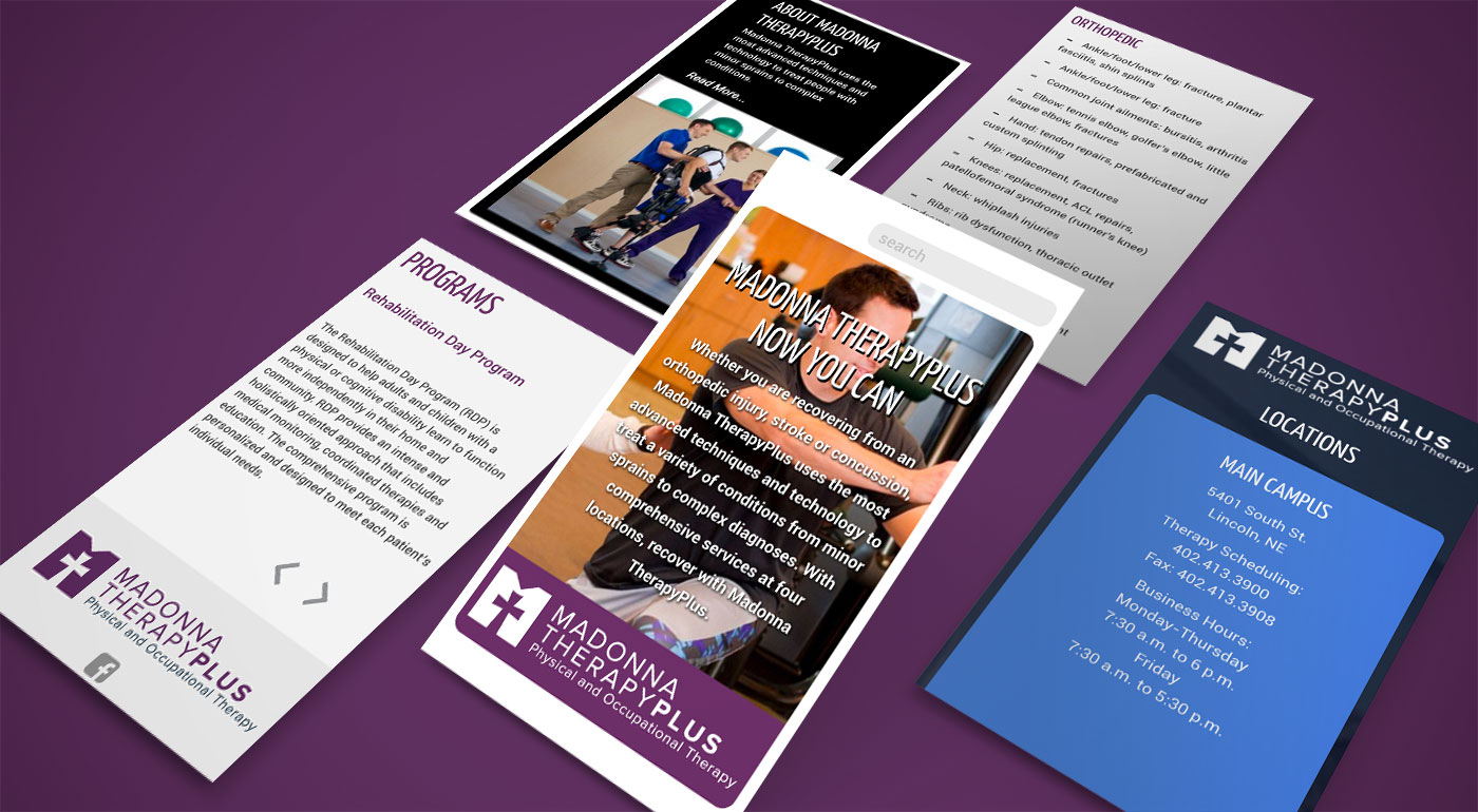 March 6, 2017 - Omaha Media Group (OMG) helped Madonna Rehabilitation Hospitals with their sub-sites for specialized services. Each sub-site needed to have its own unique design, separate from Madonna's main site, while still maintaining a consistent brand. The Madonna Sub-Sites projects also have a unique search feature. A search on the TherapyPlus sub-site will include results from all of the sub-sites, not just the one that's being searched on.