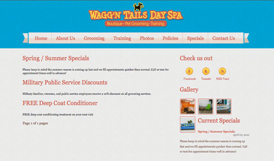 Head over to Wagg'n Tails Day Spa to take a look at their new website.